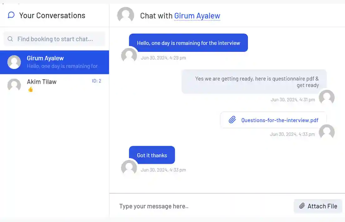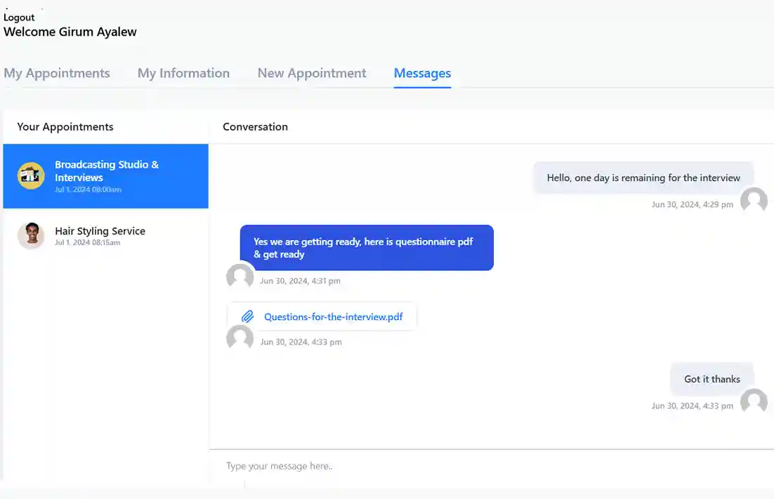 After booking an appointment, customers can communicate directly with their service provider using our appointment messaging chat system.