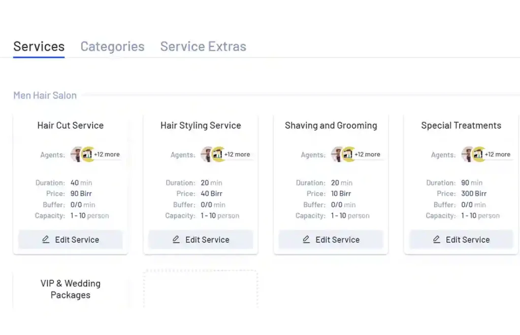 Admins oversee service management by efficiently organizing services, categories, and extras. They can add, customize, and adjust options and pricing seamlessly, ensuring flexibility and optimal service delivery.